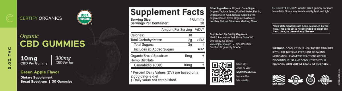 Organic CBD Gummies (THC-Free) Green Apple (30 pack, 10mg) $39.95